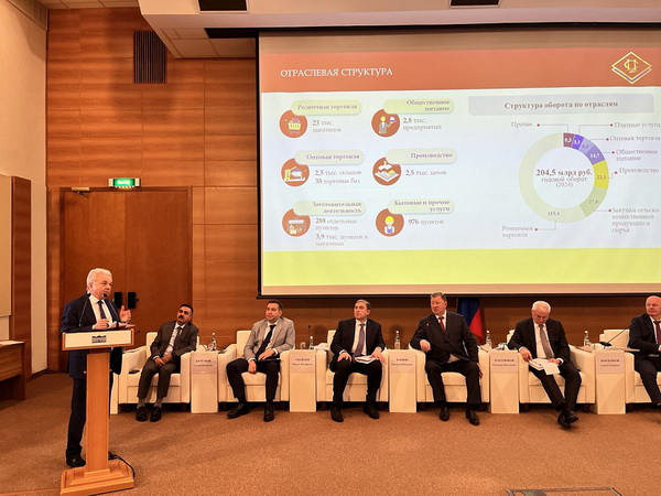 В своём выступлении Дмитрий Львович представил масштабы и социально-экономическую роль системы потребительской кооперации, которая в 2026 году отметит 195-летие. Он подчеркнул, что Центросоюз объединяет 1683 потребительских общества в 74 регионах, обслуживает 36 миллионов человек в 89 тысячах населённых пунктов, в том числе в самых отдалённых и малых сёлах. Ежегодный оборот системы составляет более 204 млрд рублей, а число работников превышает 65 тысяч человек.