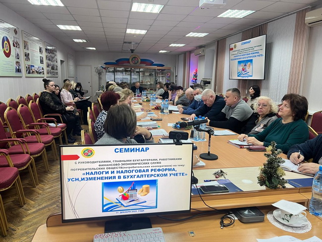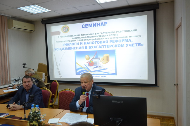 Открыл семинар председатель Совета Калужского облпотребсоюза Николай Баранов. Николай Никифорович сказал, что практически все потребительские общества с 01 января 2026 года будут исчислять и уплачивать НДС и что семинар проводится для того, чтобы правильно оценивать ситуацию, принимать правильные решения в налоговой сфере, как уже сейчас потребительским обществам нужно изменить свою работу для адаптации к самым глобальным изменениям в налогообложении малого и среднего предпринимательства за всё время, сохранить потребительское общество, сохранить рабочие места.