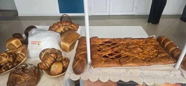 В вестибюле ДК были развёрнуты экспозиции выпускаемых товаров предприятиями и организациями округа, среди них красочная экспозиция Балабановского ПК «Хлебопродукт».