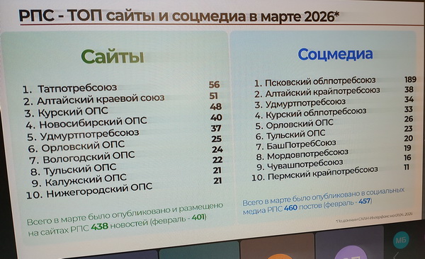 Во многих региональных союзах в марте проходила отчётная компания и по материалам с отчётных собраний, уполномоченных в потребительских обществах и представителей потребобществ в облпотребсоюзах публиковался обширный материал в средствах массовой информации муниципальных округов и в региональной прессе.
