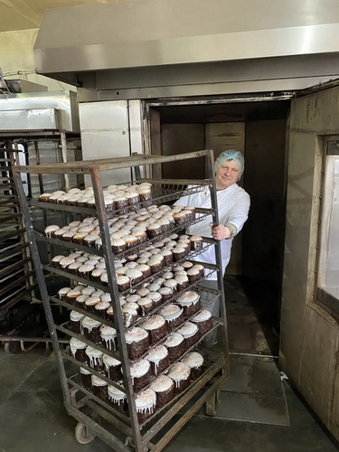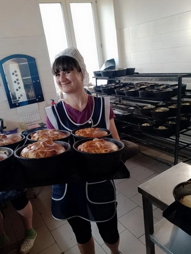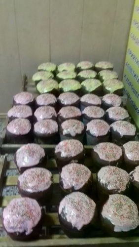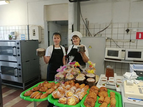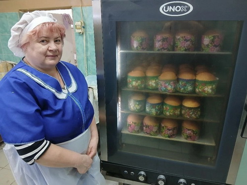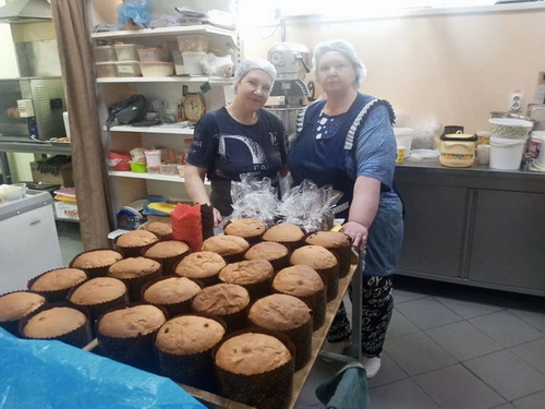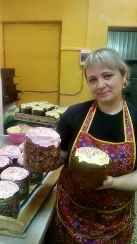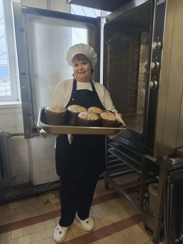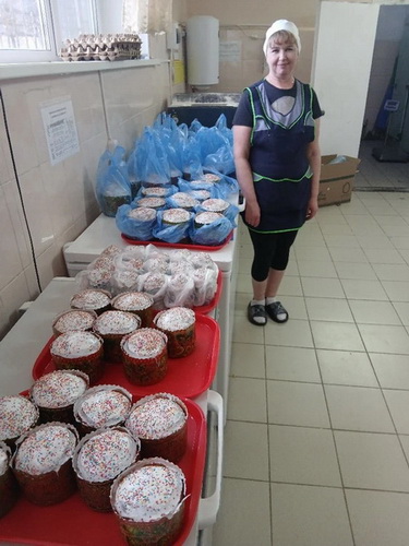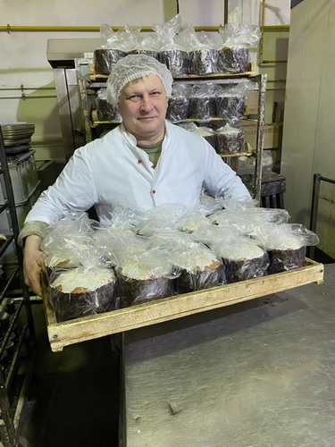 В основном, уже изготовлены и выполнены заявки, полученные от собственной розничной сети и других организаций, работа по выпуску изделий будет продолжена вплоть до дня «Светлого Христова Воскресения». На снимках производство куличей в общепитах:
