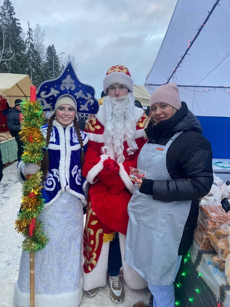 Запоминающейся ярмарку сделали Дед Мороз и Снегурочка, которые неожиданно появились в толпе покупателей. Идут себе такие, волшебные. Дедушка Мороз предлагал тем, кто верит в чудеса, дотронуться до его посоха, чтобы сбылось все задуманное. Дед Мороз со Снегурочкой не обошли и палатку Кондровского поспо.